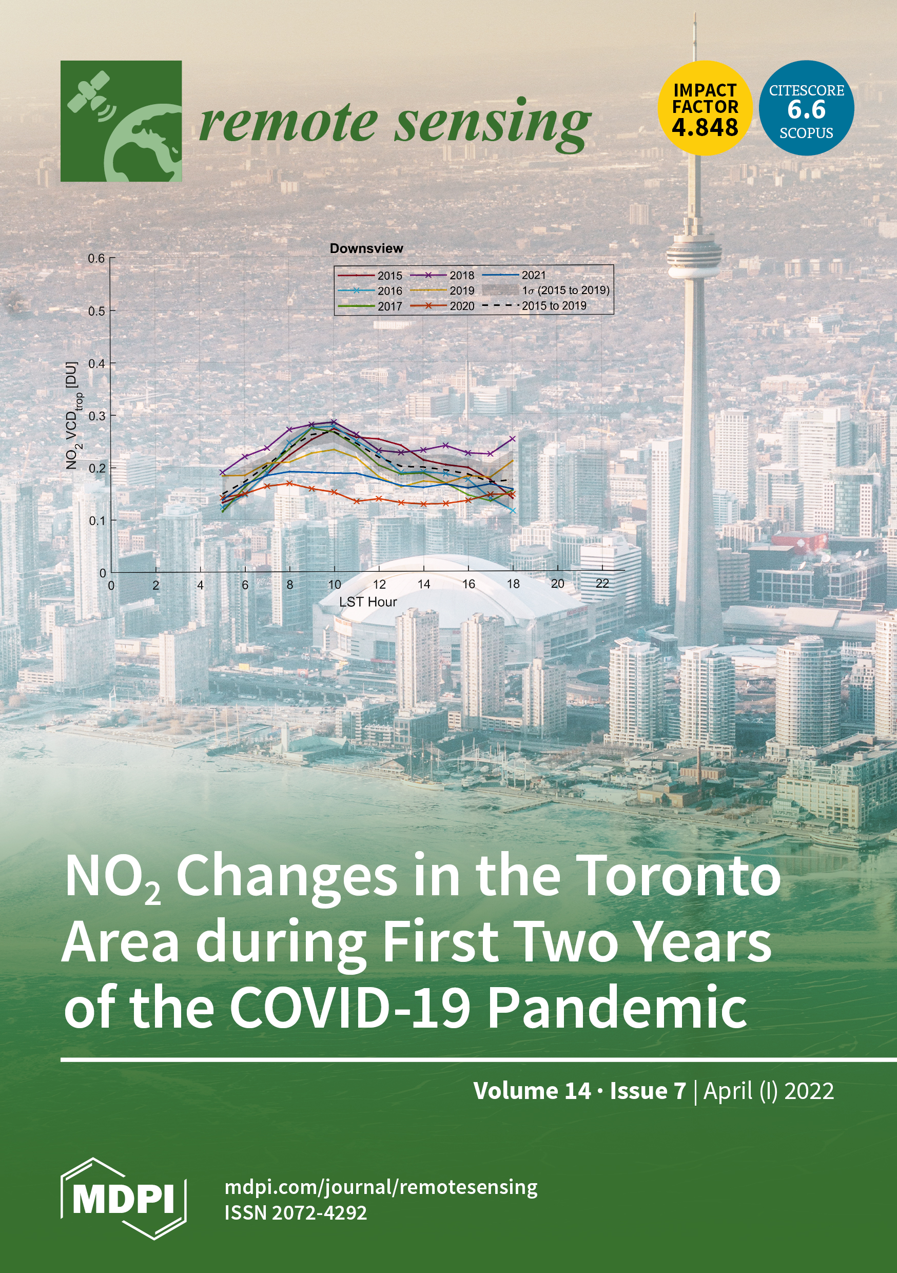Cover Story: This work shows changes in tropospheric and surface nitrogen dioxide (NO2) that were observed during first two years of the COVID-19 pandemic in the Greater Toronto Area, Canada. Meteorological and satellite data were used to facilitate the analysis and reveal detailed local emission changes from different areas of the City of Toronto. Ground-based remote sensing data show a clear reduction in NO2, especially in the more polluted downtown and airport areas (reductions from 35% to 40% in 2020 compared to 5-year mean value). Compared to the sharp decline in NO2 emissions in 2020, the atmospheric NO2 amounts in 2021 started to recover, but were still below the mean values of the pre-pandemic time. For some sites, the pre-pandemic NO2 peak caused by local morning rush hour had still not returned in 2021, indicating a change in local traffic and commuter patterns. View this paper.