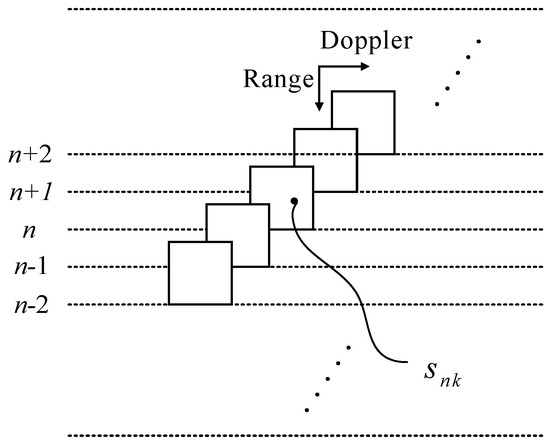 We assume that represents the restructuring RD image matrix, where and denotes range cells and frequency cells, respectively. The local statistical information around each pixel can be estimated as follows [24]: