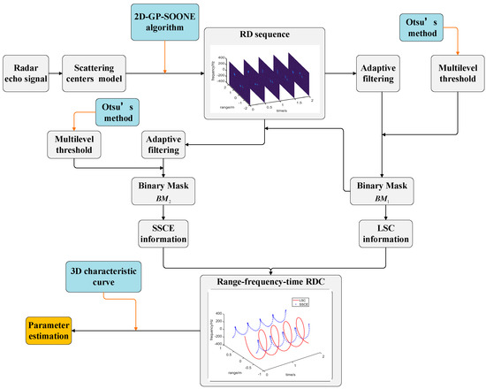 Parameter estimation method under case 1 can be expounded in Figure 7. As depicted in Figure 7a, the range–frequency–time radar data cube can be obtained from the RD sequence, while automatic association with LSC data is implemented by the Binary Mask algorithm.