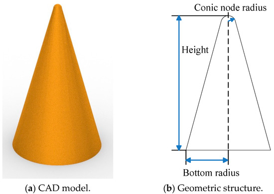 Below, as shown in Figure 4, simulated data using a smoothed cone-shaped CAD model is generated to prove the validity of the proposed parameter estimation method. Then, to obtain electromagnetic data, FEKO software is utilized with the Physical Optics (PO) method. In the experiments below, the parameters are set as shown in Table 2.