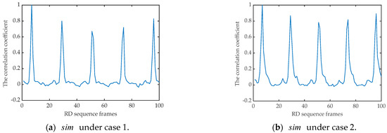 Firstly, the micro-motion period is estimated by the RD sequence. We choose as the initial time point and select the RD image at as the reference image. The correlation coefficient between and other sequence images can be expressed as: