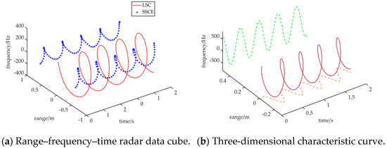 Under this case, the range and frequency information of scattering point can be defined as and , respectively. The range and frequency information of SSCE can be defined as and , respectively. The 3D characteristic curve can be rewritten as