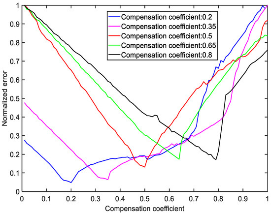 Normalized error of different compensation coefficients.
