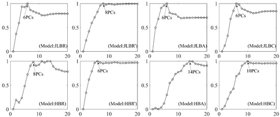 The normalized ratios of PCTVAR and RMSE (NRPR) of the PLS models that were developed with the spectral reflectance of Jilin (JL) and Heilongjiang (HLJ) benchmarks and their three forms of spectral transformation (R’, A, and C) are shown in Figure 7. The maximum NRPR indicates the optimum number of PLS components (PCs) for modeling. The subsequent PLS models developed with corresponding spectra derived from different control experiments should refer to the benchmarks to keep the PCs consistent.