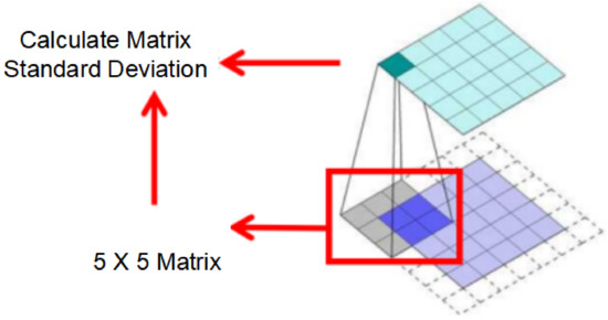 Illustration of standard deviation image extraction using convolution processing.