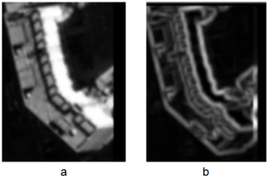 Illustration of the image feature map. (a) building roof image; (b) extracted feature map.