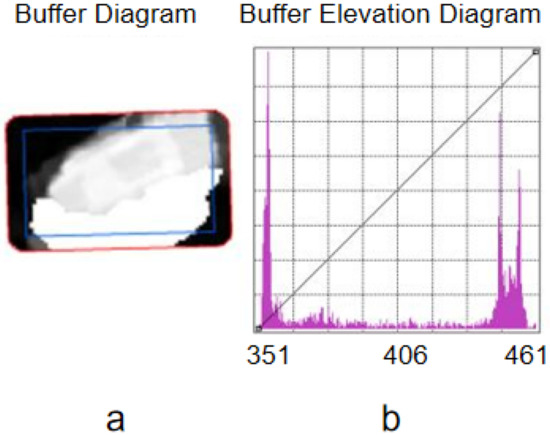Bottom elevation extraction. (a) the buffer of DSM; (b) the elevation histogram.