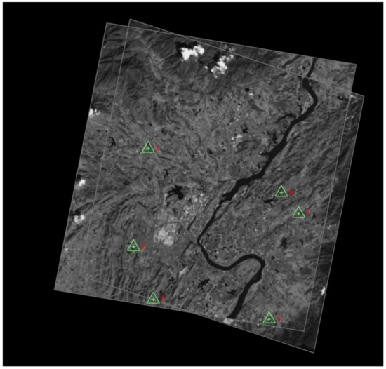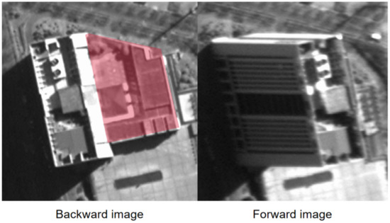 In the Xi’an study area, we directly digitized 40 buildings’ roof contours on the backward image with the ArcMap software, as shown in Figure 14b.