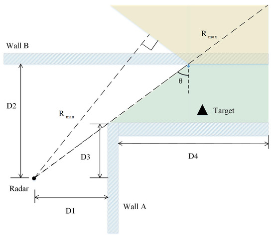 The NLOS region refers to the area where targets cannot be directly observed due to occlusion. In other words, the transmitted signal of the radar cannot directly reach the target. It can reach the target by penetrating obstacles or reflection and scattering. According to the way the transmitted signal reaches the target object, the NLOS target detection technology can be divided into two classifications, based on penetration and based on reflection. For indoor security, most of the current research of NLOS target detection radars focuses on technology based on penetration, such as through-wall radars [11,12,13].
