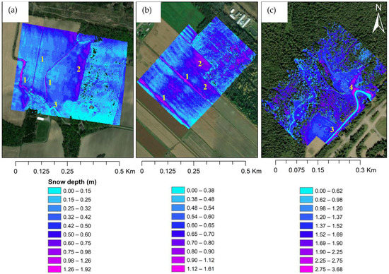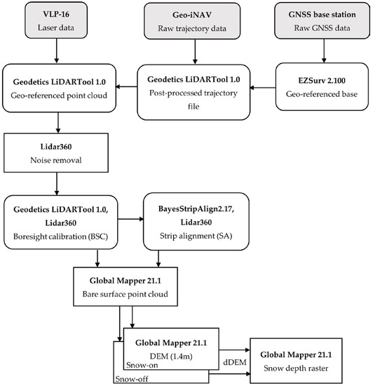 - Jacobs, J.M.; Hunsaker, A.G.; Sullivan, F.B.; Palace, M.; Burakowski, E.A.; Herrick, C.; Cho, E. Snow depth mapping with unpiloted aerial system lidar observations: A case study in Durham, New Hampshire, United States. Cryosphere 2021, 15, 1485–1500. [Google Scholar] [CrossRef]