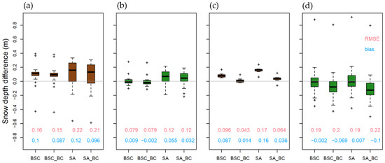 - Tinkham, W.T.; Smith, A.M.S.; Marshall, H.; Link, T.; Falkowski, M.; Winstral, A. Quantifying spatial distribution of snow depth errors from lidar using random forest. Remote Sens. Environ. 2014, 141, 105–115. [Google Scholar] [CrossRef]