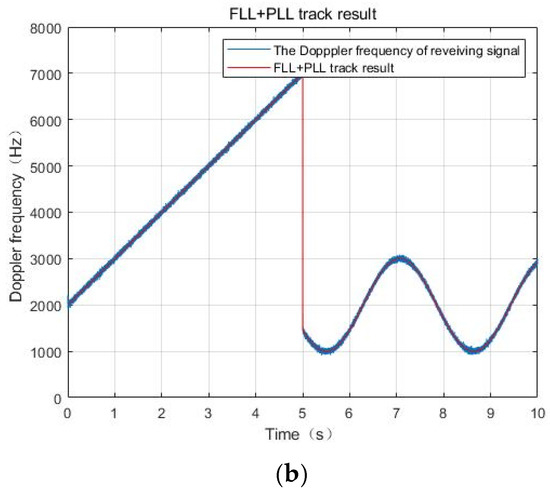 Here, represents the thermal noise jitter error, and represents the dynamic stress error. is the bandwidth of the PLL. is the system acceleration. is the refresh interval time of the Doppler measurement, which is equal to 0.2 ms in the system [36,37].