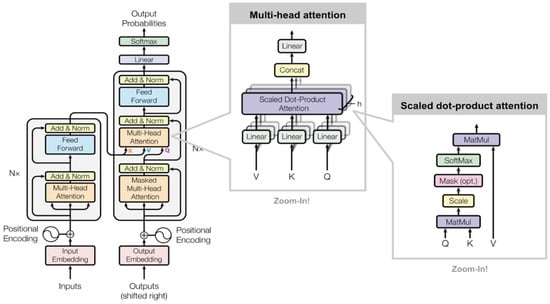 - Vaswani, A.; Shazeer, N.; Parmar, N.; Uszkoreit, J.; Jones, L.; Gomez, A.N.; Kaiser, Ł.; Polosukhin, I. Attention Is All You Need. Adv. Neural Inf. Processing Syst. 2017, 30, 5998–6008. [Google Scholar]
