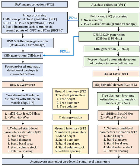 - Yoshii, T.; Matsumura, N.; Lin, C. Integrating UAV and lidar data for retrieving tree volume of hinoki forest. In Proceedings of the IGARSS 2020—2020 IEEE International Geoscience and Remote Sensing Symposium, Waikoloa, HI, USA, 26 September–2 October 2020; pp. 4124–4127. [Google Scholar] [CrossRef]