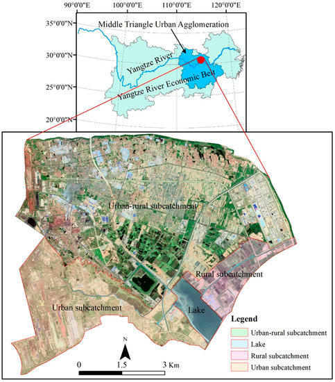 The Beihu catchment is situated on the eastern expansion edge of the Wuhan City and includes the majority of heavy industrial parks (Figure 2). As a result, the Beihu catchment has a relatively lagging underground pipe network and sewage treatment capacity. Furthermore, sewage water sources, such as industrial, domestic, runoff, and agricultural sources, contribute vastly without reasonable water treatment, and discharge directly in the surface water body. Thus, the multiple sources of sewage have caused the downstream water body of Beihu Lake to be heavily polluted for a long time. Recently, many countermeasures have been performed to control water pollution; however, significant improvement in water quality has not been observed [42].