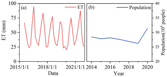 The potential monthly ET (a); the yearly population of the Beihu catchment (b).