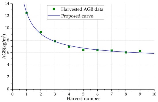 Harvested AGB and a proposed fitting curve.