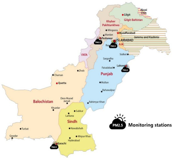 The study area we have chosen in this paper is Pakistan. We have taken four metropolitan cities for our experiments such as Karachi, Lahore, Islamabad and Peshawar. Figure 1 shows the study areas and monitoring stations for PM2.5 in Pakistan.