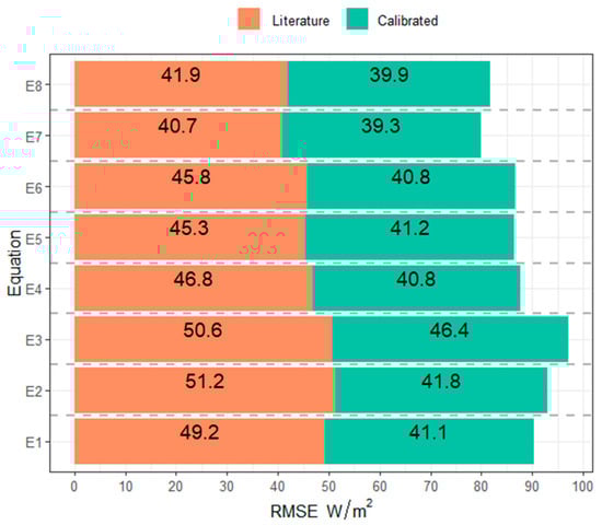 RMSE values observed with the constant values calibrated and proposed by the literature.
