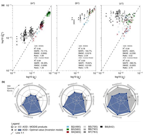3.1. Inversion Model () versus MODIS Aerosol in the Atmospheric Correction