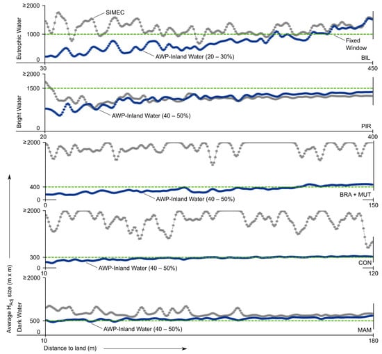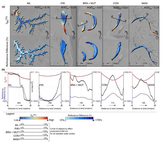 3.4. Adjacency Effect Influence on Water Bodies