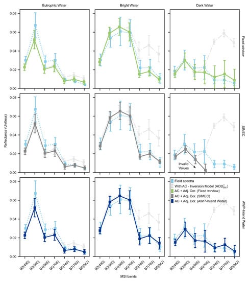 - Kiselev, V.; Bulgarelli, B.; Heege, T. Sensor independent adjacency correction algorithm for coastal and inland water systems. Remote Sens. Environ. 2015, 157, 85–95. [Google Scholar] [CrossRef]