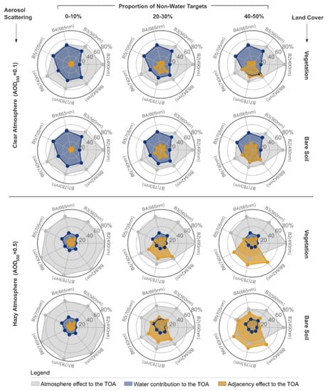 3.5. Sensitivity of Adjacency Effect at the TOA