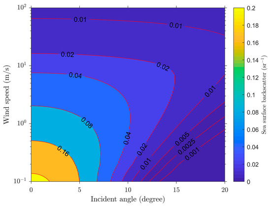 The sea surface lidar backscatter (in the unit of ) is written as follows [44]: