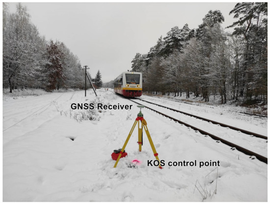 The quality of the KOS network varies significantly. The GNSS measurement made it possible to detect large errors in determining the position of the KOS control points on a section of the measured track.