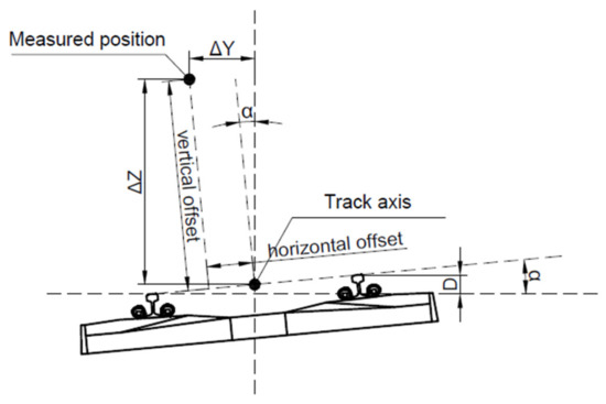 Due to the presence of the above offsets, the results of track axis measurement need to be reduced to the track axis position. Figure 10 shows schematically the horizontal and vertical offsets of the measured position with respect to the track axis.