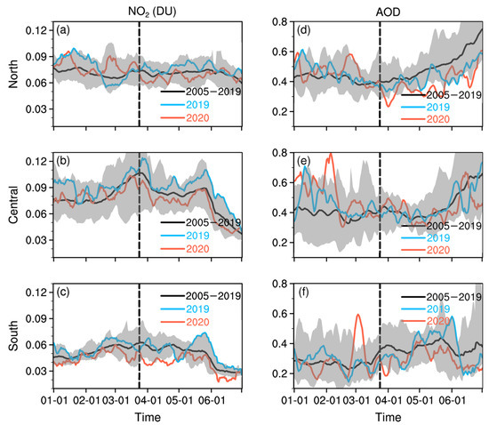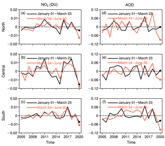 3.1. Changes in Satellite Retrieved Tropospheric NO2 and AOD