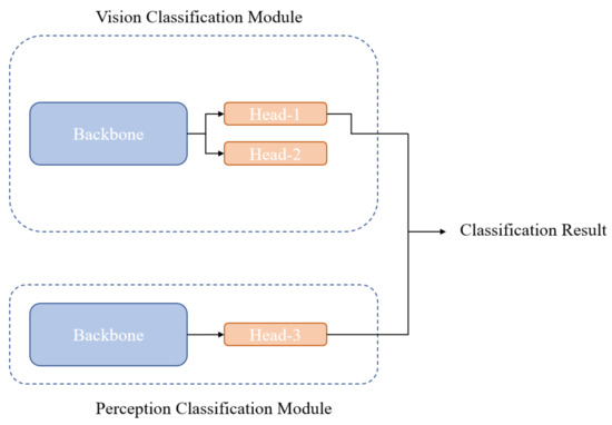 where denotes the output weight of a vision classification module, we set 0.7 as default; denotes the output weight of perception classification module, we set 0.3 as default.