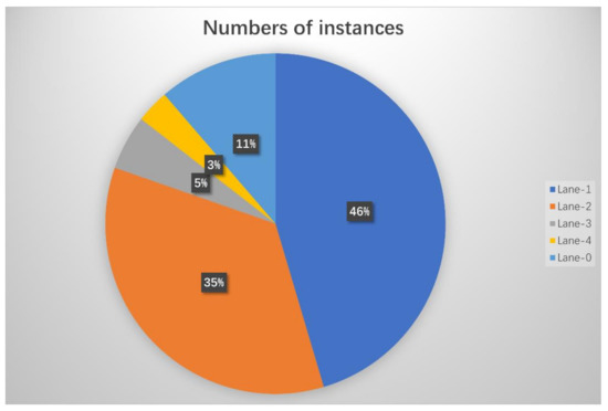 As shown in Figure 5, the number of first and second lane index exceeds 80% of the overall data, which is also consistent with the real-world scenario: most roads are two lanes in one direction, so the number of first and second lanes far exceeds the rest of the classes. Since deep learning relies heavily on the amount of data, this uneven data distribution also poses some pressure for the effectiveness of the network.