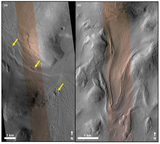 - Williams, J.; Scuderi, L.A.; Newsom, H.E. Constraining Possible Glacial Reworking of Ancient Fluvial Channels on the Dichotomy Boundary at Equatorial Regions, Mars. In Proceedings of the AGU Fall Meeting Abstracts, 2020; Available online: https://ui.adsabs.harvard.edu/abs/2020AGUFMP038...02W/abstract (accessed on 28 February 2022).