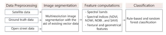 - Gibril, M.B.A.; Kalantar, B.; Al-Ruzouq, R.; Ueda, N.; Saeidi, V.; Shanableh, A.; Mansor, S.; Shafri, H.Z.M. Mapping heterogeneous urban landscapes from the fusion of digital surface model and unmanned aerial vehicle-based images using adaptive multiscale image segmentation and classification. Remote Sens. 2020, 12, 1081. [Google Scholar] [CrossRef]
