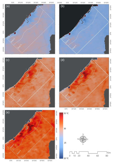 Overall, the following points could be concluded. In summer, the average daily LST decreases temporally regardless of the land use and the proximity distance from the coastlines. In summer, the average nighttime LST increases temporally regardless of the land use and the proximity distance from the coastlines. In winter, the average nighttime LST is stable temporally and did not exhibit significant changes.