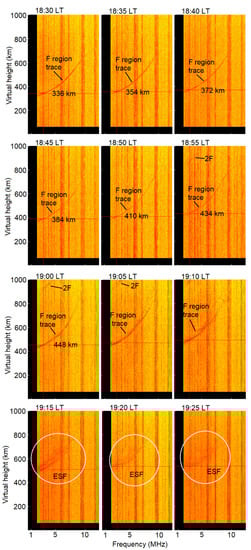 A sequence of ionograms in the time interval of 18:30 LT–19:25 LT was obtained from the Cebu ionosonde on 31 March 2014.
