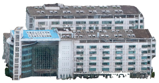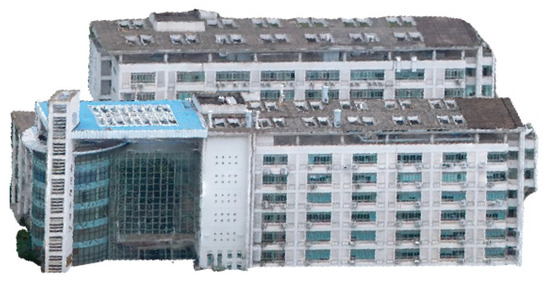 Hence, the proposed method can effectively fill the complex holes of the building point cloud and preserve the original features of the building quite well, and the filled results are similar to the original building point cloud. From this comparison, we can see that the proposed method always outperforms the MLS. The 3D model of the single building can be constructed when the complete building point clouds are obtained; the result is shown in Figure 14. The 3D model has a complete surface that does not show any obvious holes. Therefore, the effectiveness and practicability of the proposed method can be verified.