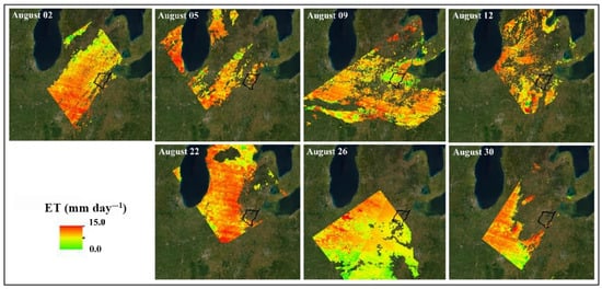 - Marambe, Y.; Simic Milas, A. Modeling Evapotranspiration for C4 and C3 Crops in the Western Lake Erie Basin Using Remote Sensing Data. Int. Arch. Photogramm. Remote Sens. Spat. Inf. Sci. 2020, 42, 73–77. [Google Scholar] [CrossRef] [Green Version]