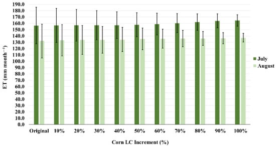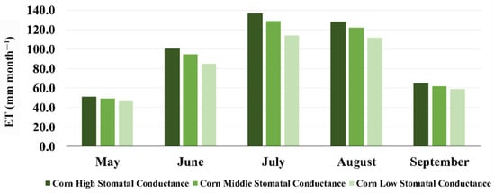 3.3. Estimated ET Rates under Different Percentages of Corn Cover