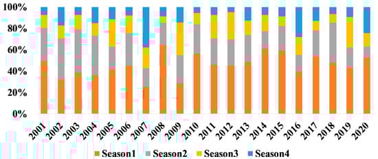 Figure 4 shows a seasonal distribution graph of active fire locations from November 2000 to December 2020. The fire locations mostly occurred in December to February, considered as the winter season.
