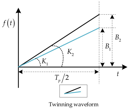 In order to obtain twinning waveform signals with similar structure but different chirp rates, it is necessary to design two groups of different signal bandwidths, and , and calculate the corresponding chirp rates, and .