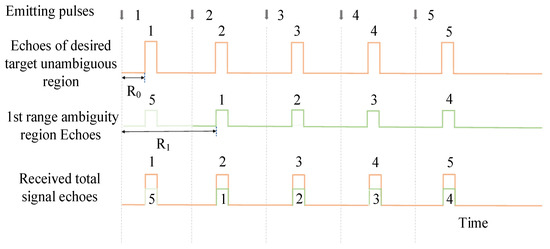 Schematic diagram of range-ambiguous clutter pulse echoes.
