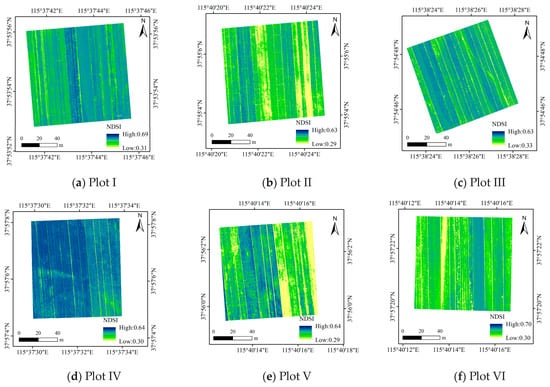 NDSI results of each flight plot based on the sensitive band centers λ(724 nm, 784 nm) (4 June 2021).