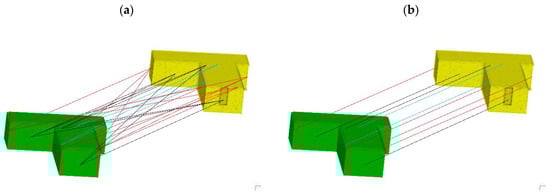 Hence, the matching cost ensures that the most likely rotation matrix, as compared to other matrices, is measuring the matching of all the corresponding plane segments of both models, as shown in Figure 10. Similarly, it also confirms the most likely translation is determined from the potential pair of matching plane segments that is offering the maximum overlap of all the matching plane segments, as shown in Figure 11. To further improve the registration, fine registration using ICP can be performed in the end, if required.