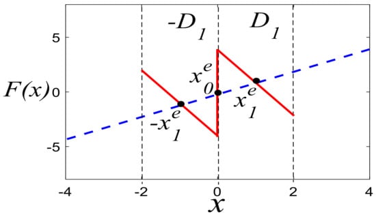 Hence, a sawtooth wave can be seen in the PWL function in the system (3). Now, using systems (1) and (3), the following equation can be used to locate equilibrium points: