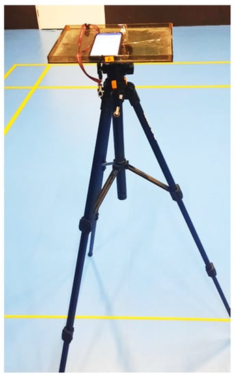Stand used for manual data collection, consisting of a tripod and a mobile terminal on which an application for collecting measurement data is installed.