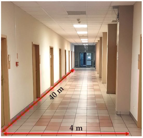 One of the indoor environments was the Sports and Education Centre “Sports Bay” at Lodz University of Technology in Poland. Simple BLE beacons by Kontakt.io were used as signal transmitters. The BLE beacon was configured to broadcast information using one radio channel. The frequency the identification message can be modified (in our case it was 100 ms) and the output power varied (in our scenario it was 0 dB). The measurements were made in a 2 × 2 m grid. Almost 90,000 RSSI samples were collected during the measurement campaign. The measurements required about 4 days.