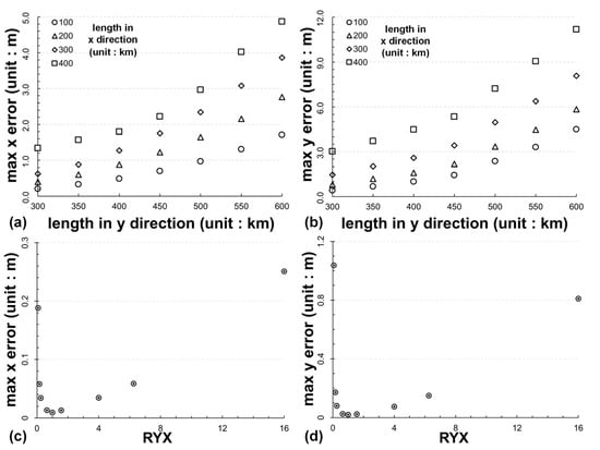 3.3. Effect of Grid Shape Change on the Maximum Coordinate Transformation Error of the CT Method