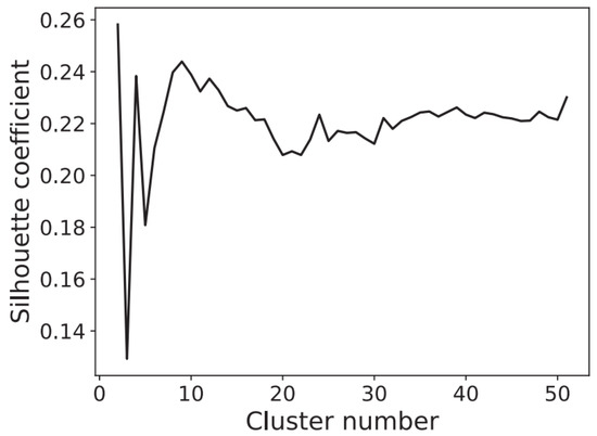 - Rousseeuw, P.J. Silhouettes: A graphical aid to the interpretation and validation of cluster analysis. J. Comput. Appl. Math. 1987, 20, 53–65. [Google Scholar] [CrossRef] [Green Version]